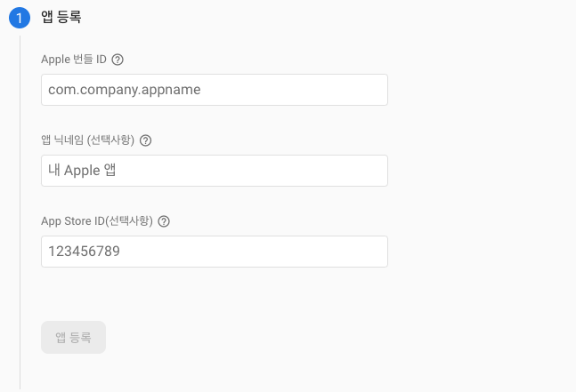 Apple 번들 ID에 현재 프로젝트의 BundleIdentifier를 넣고 앱 닉네임에 현재 프로젝트 이름을 넣어준다.