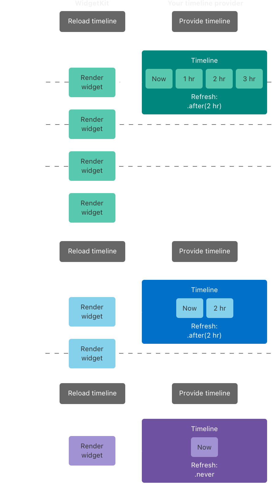WidgetKit은 Provider로부터 타임라인을 받고 타임라인을 통해 언제 위젯을 업데이트하고 어떤 정보로 위젯을 업데이트할 것인지에 대한 정보를 얻는다