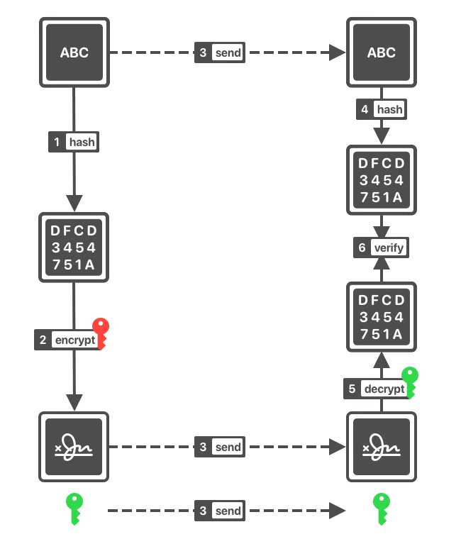 - signature은 private key를 이용해 sign 된다.