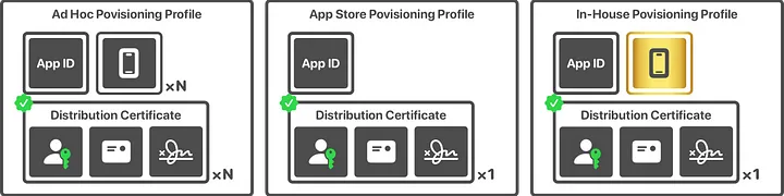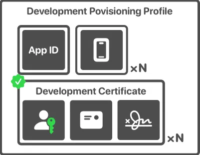 - 어느 기기에서 앱을 실행할 것인지, 어느 인증서를 사용해 앱을 sign 할 것인지 app의 entitlement 등에 대한 정보