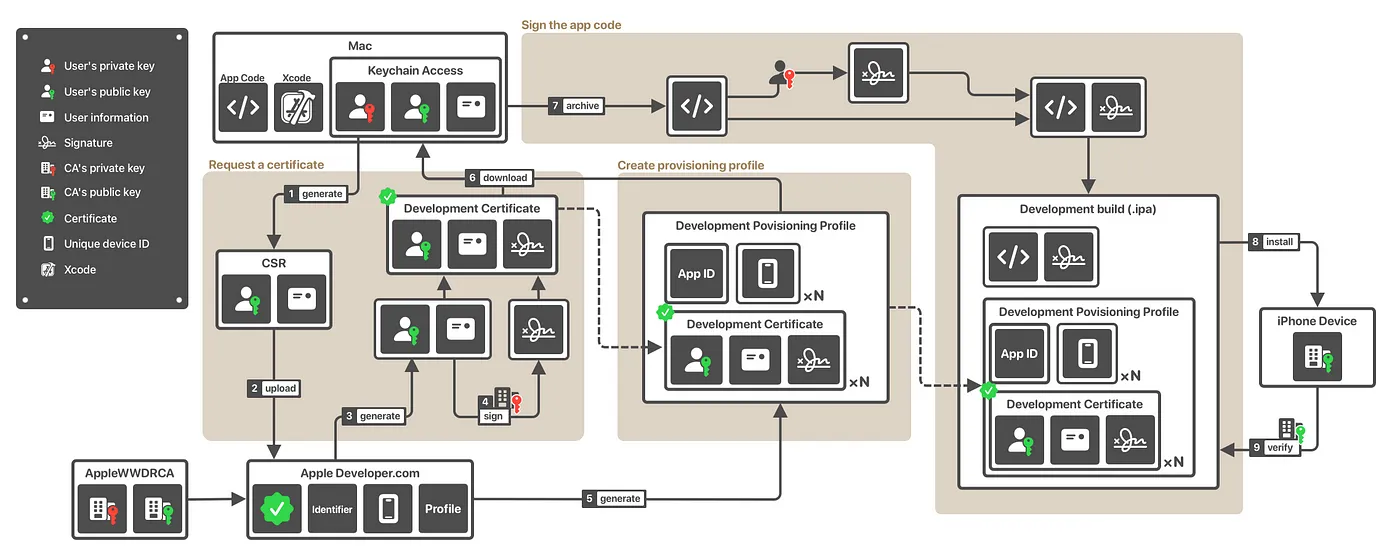💡 기기에 앱을 설치하기 전에, 앱 스토어에 제출하기 전에 애플에서 발급한 인증서를 통해 sign해야 한다.